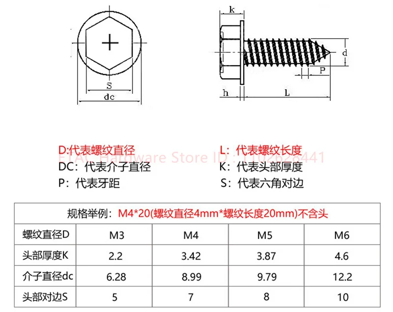 304 Stainless Steel Cross Hex Flange Self Tapping Screw