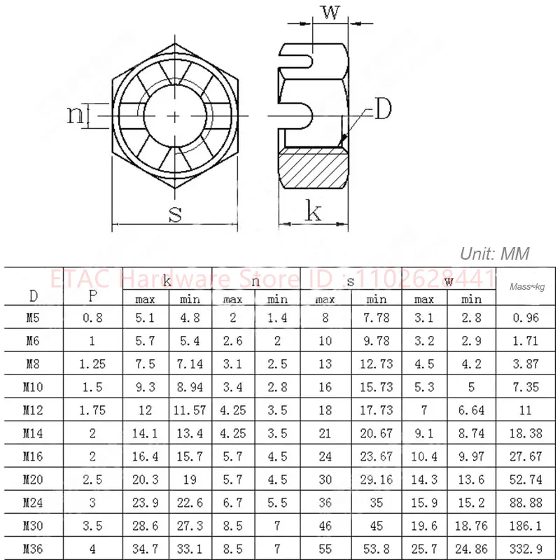 GB6181 304 Stainless Steel Slotted Hexagon Castle Nut