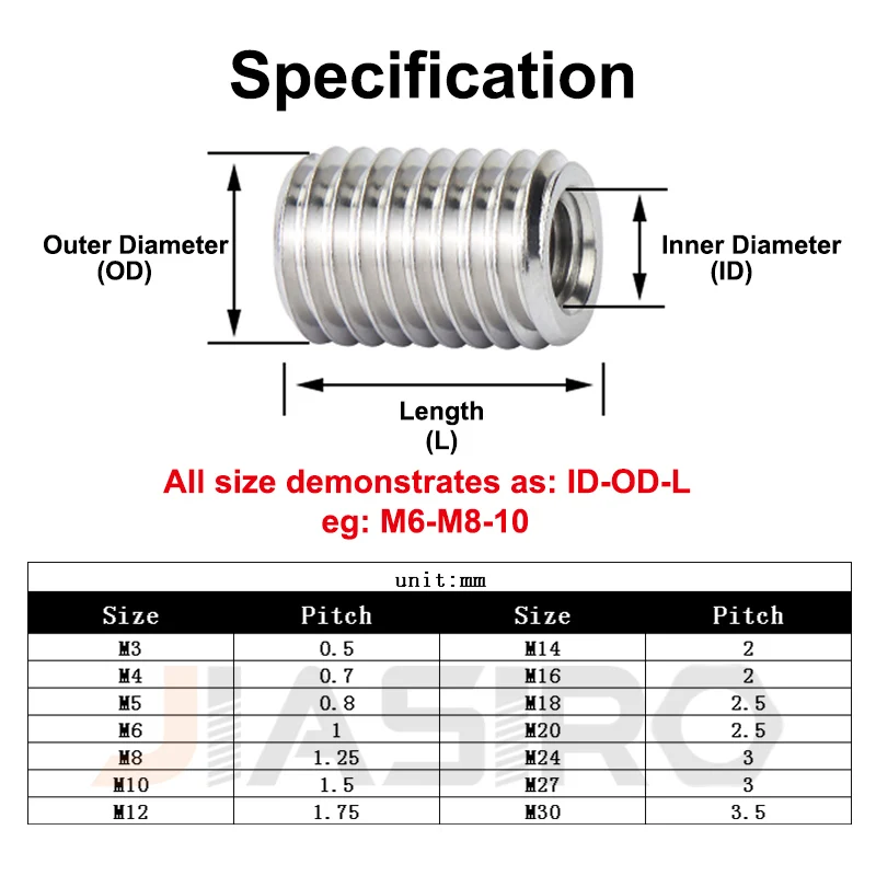 M10-M14 (2pcs), M10-M16 (2pcs), M12-M16 (2pcs), M12-M20 (1pc), M2-M4 (5pcs), M2-M5 (5pcs), M2.5-M4 (5pcs), M2.5-M5 (5pcs), M3-M5 (5pcs), M3-M6 (5pcs), M4-M10 (3pcs), M4-M6 (5pcs), M4-M8 (5pcs), M5-M10 (3pcs), M5-M8 (5pcs), M6-M10 (5pcs), M6-M12 (2pcs), M6-M14 (2pcs), M6-M8 (5pcs), M8-M12 (2pcs), M8-M14 (2pcs), M8-M16 (2pcs)