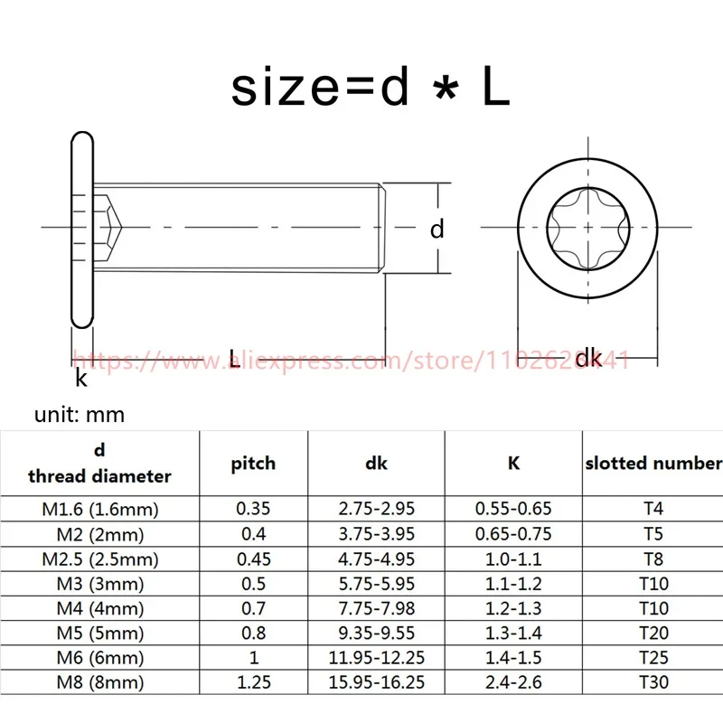304 Stainless Steel CM Flat Thin Head Torx Screws
